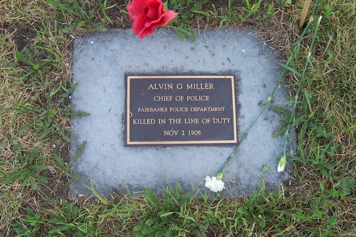 On November 2, 1908, in Fairbanks, Alaska, Chief of Police Alvin G. Miller—male, 37 years old, answered a call that began like a disturbance and turned into the city's first line-of-duty death. He and two officers went to the Pioneer Hotel, where a woman had barricaded herself in an upstairs room. When they forced the door, the woman sat on the bed with a. 38-caliber revolver and fired three shots; one struck Chief Miller, mortally wounding him. He had served four years on the force and was Fa ...Read More
