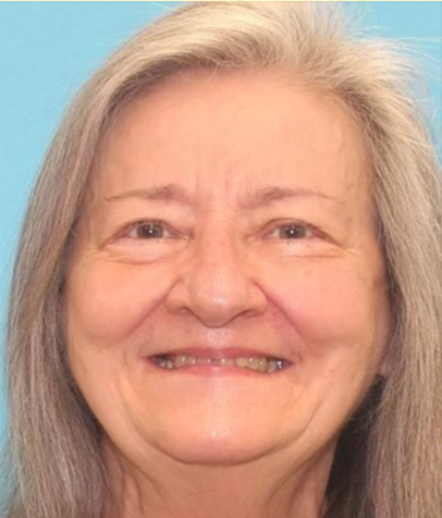 The scalp hair is gray, wavy, and extends to the upper back.