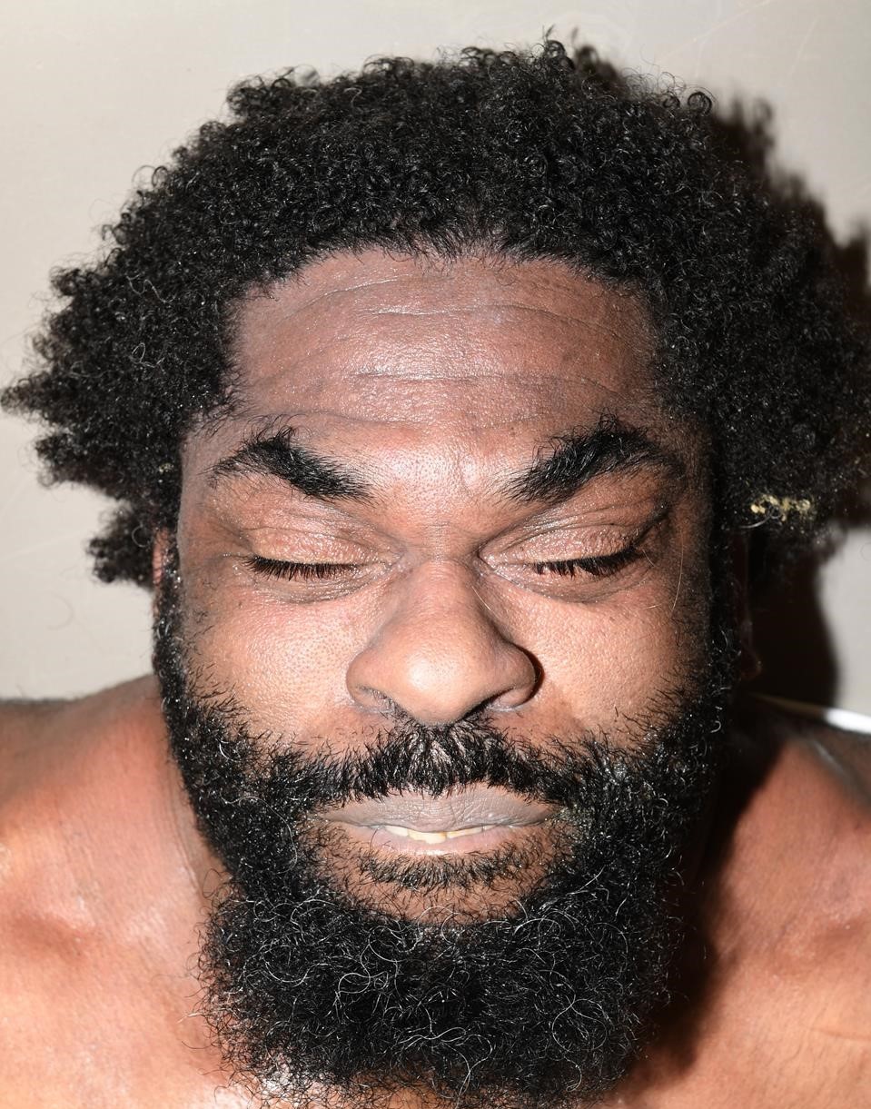 Short, black hair.