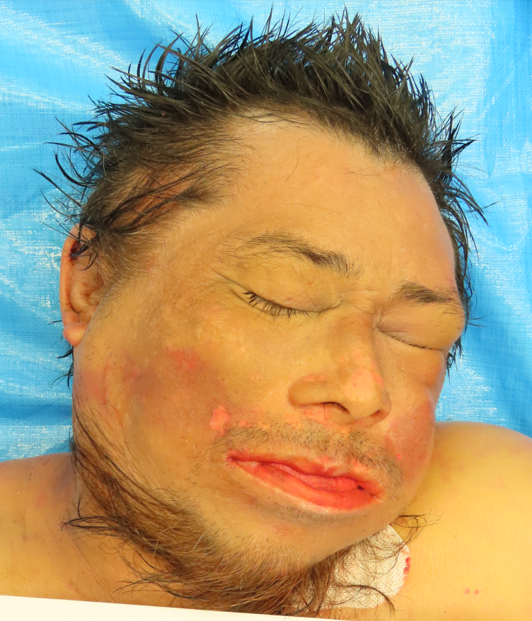 The scalp hair is straight, black, and measures approximately 3 inches in length.