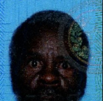The scalp hair is tightly curly and gray, measuring up to 1-1/2 inches.