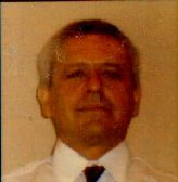 The scalp hair is slightly receded. It is short, gray, and straight