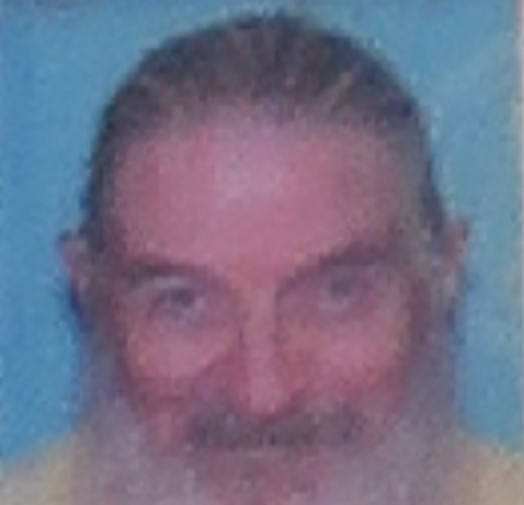 The scalp is balding with gray, strait, long hair
