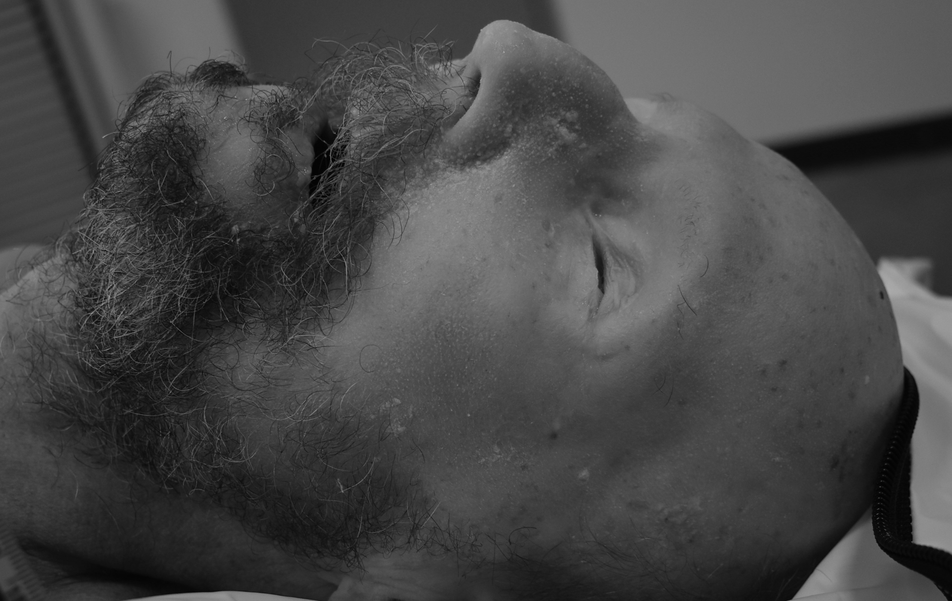 grey, balding in top