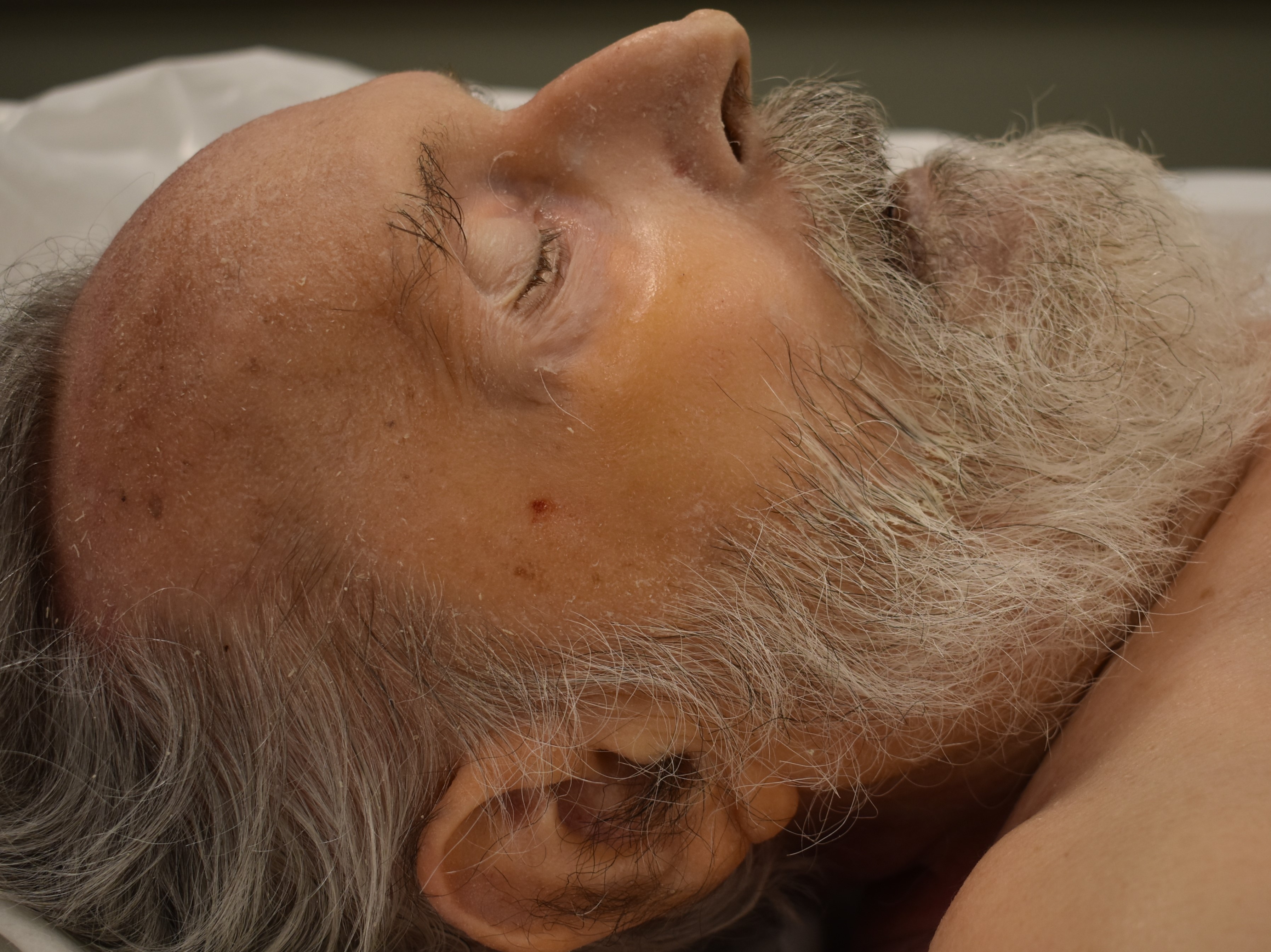 gray/white hair, appx. 12 cm, receding hairline