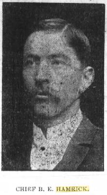 B. Edgar Hamrick, aged 36, was the Chief of Police for the Shelby Police Department in North Carolina. On August 27, 1904, he was shot and killed at the county jail. The incident occurred after Hamrick had arrested four men for being drunk in public. The men had been taken to the city lockup but were moved to the county jail due to their disruptive behavior. As Hamrick and other officers were placing them in a cell, one of the men continued to yell obscenities. Hamrick re-entered the cell to add