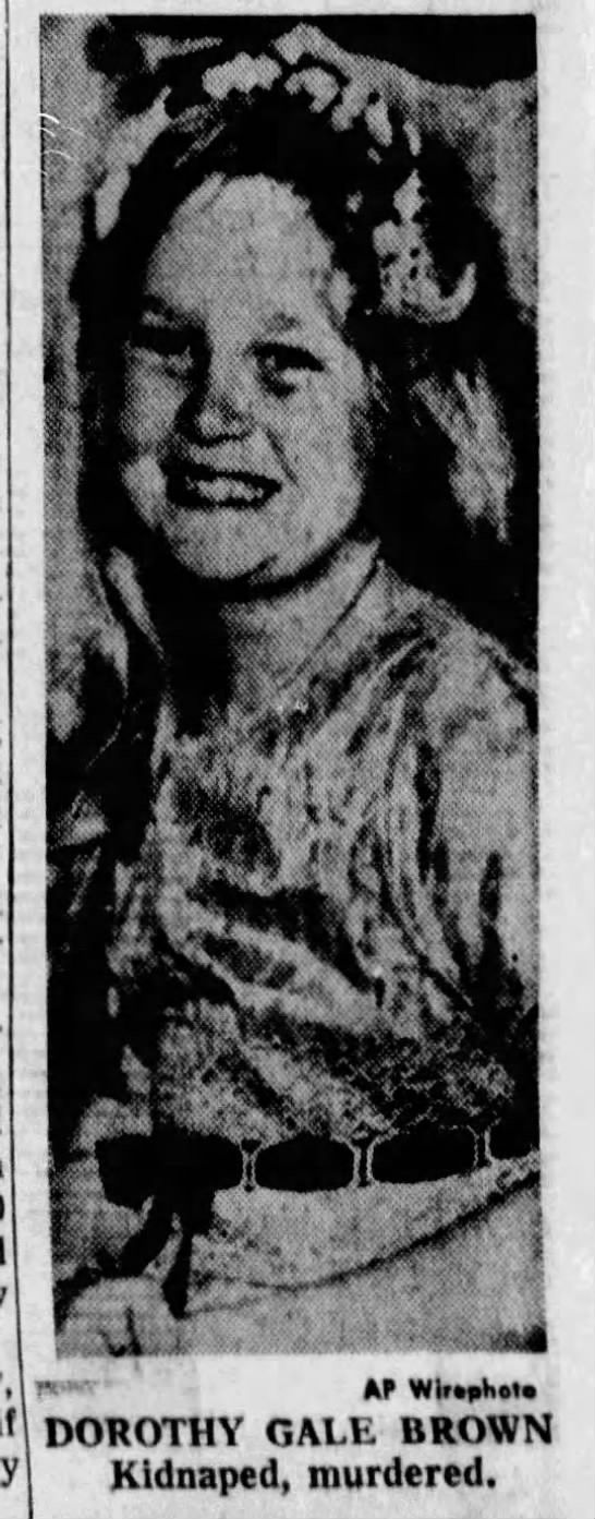 Dorothy Gale Brown, an 11-year-old Caucasian female, disappeared on the evening of July 2, 1962, in Torrance, California. She had left her home at the Skylark trailer park around 7 p.m. to ride her bicycle to a nearby car wash to purchase sodas from a vending machine. Her father later found her bicycle parked on its kickstand on 21st Street near Border Avenue, about a block and a half from their home, with no signs of a struggle.