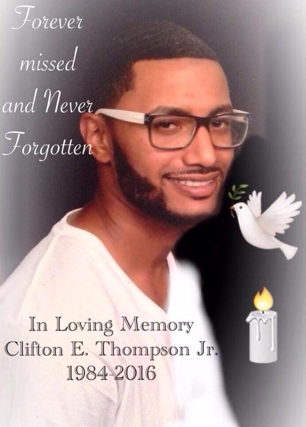 Black/African American male Clifton E. Thompson Jr., age 31, was shot on the evening of February 27, 2016, in the parking lot of the Prides Court Apartments in Ogletown, Delaware. Police were called around 7:41 p.m. to the unit block of Chatham Lane, where they found a man in his thirties with gunshot wounds to the torso and lower extremity. He was taken by Christiana Fire Company to Christiana Hospital and pronounced dead shortly after arrival. Investigators publicly stated early that the attac