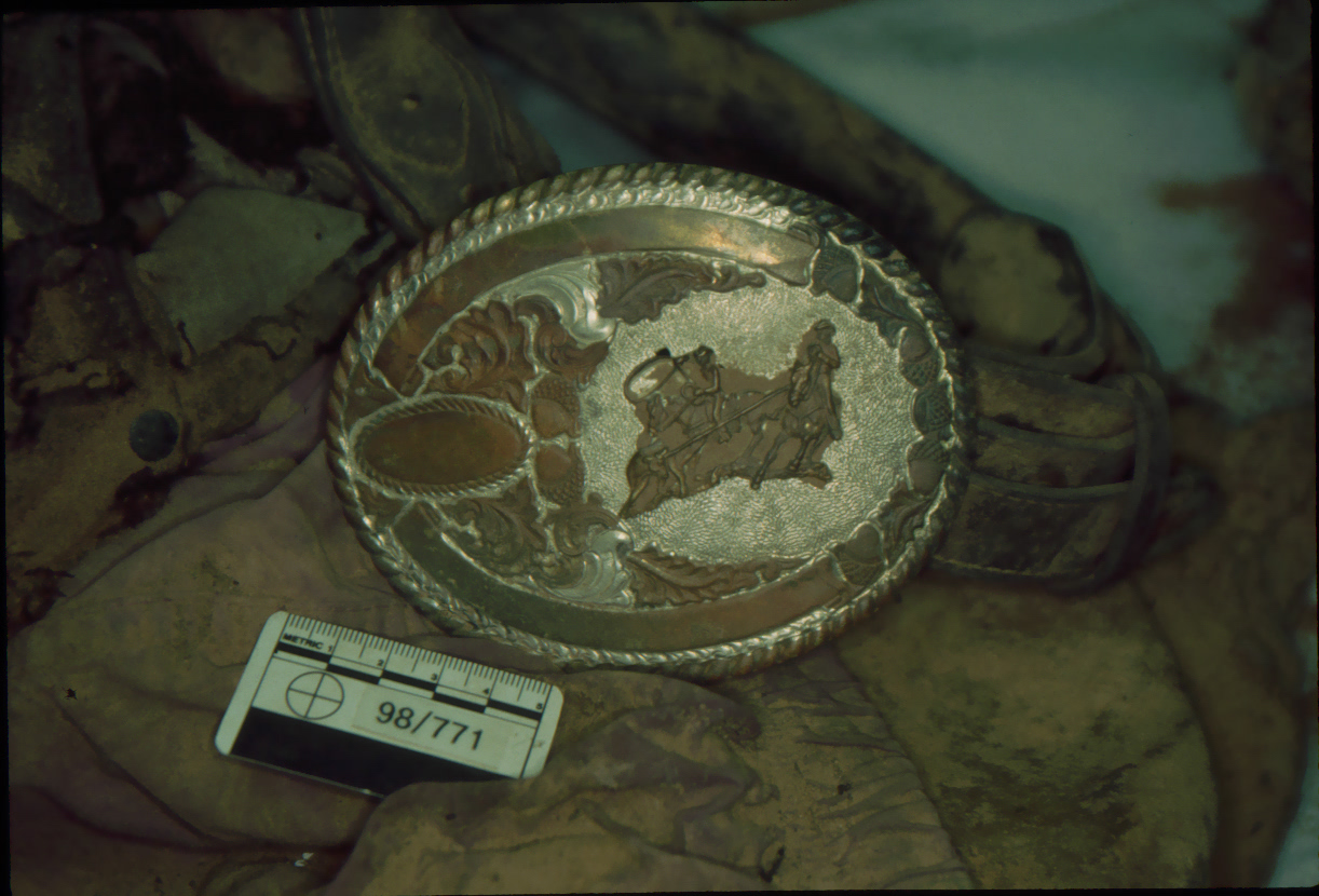 Loose clumps of brown hair were found near the skeletal remains.