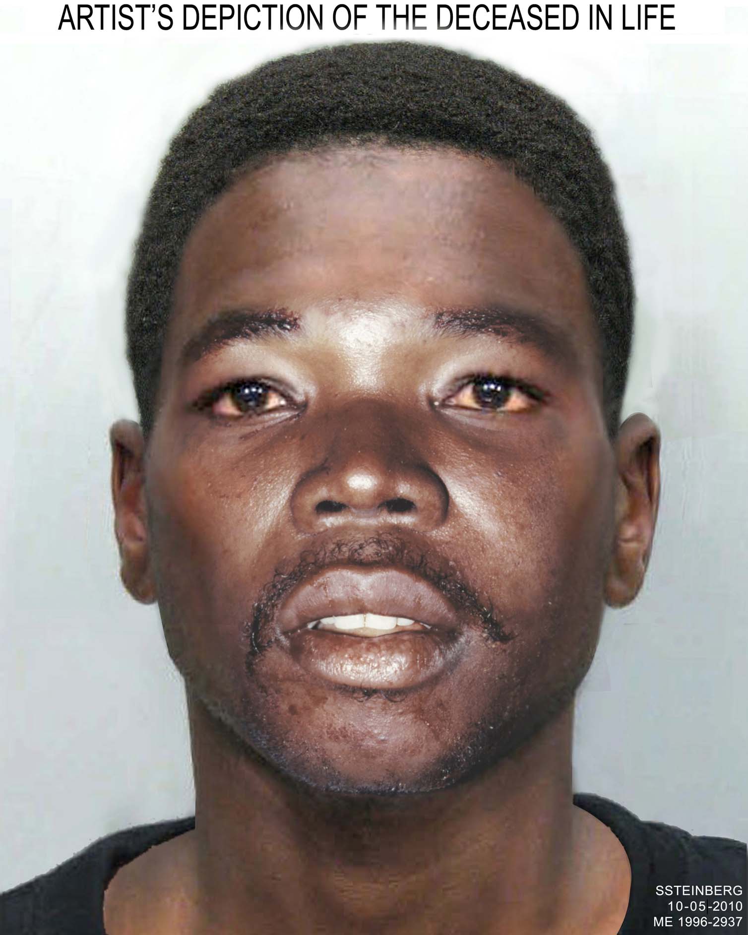 Black well groomed hair covers the entire scalp