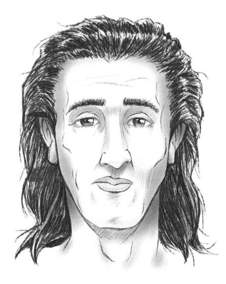shoulder length, coarse, dark blond to light brown, straight