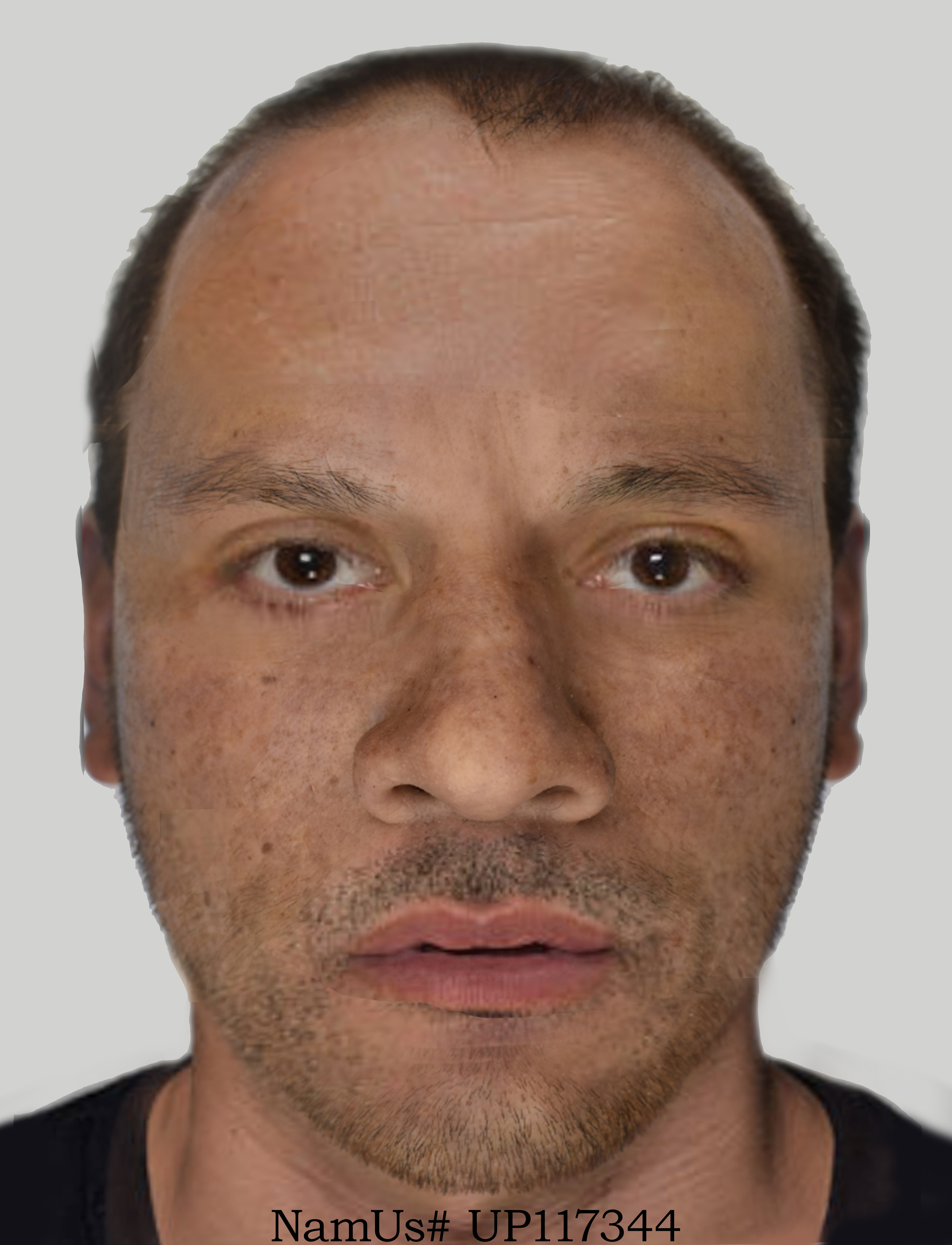 Short/buzzed cut with slight balding on top of head.