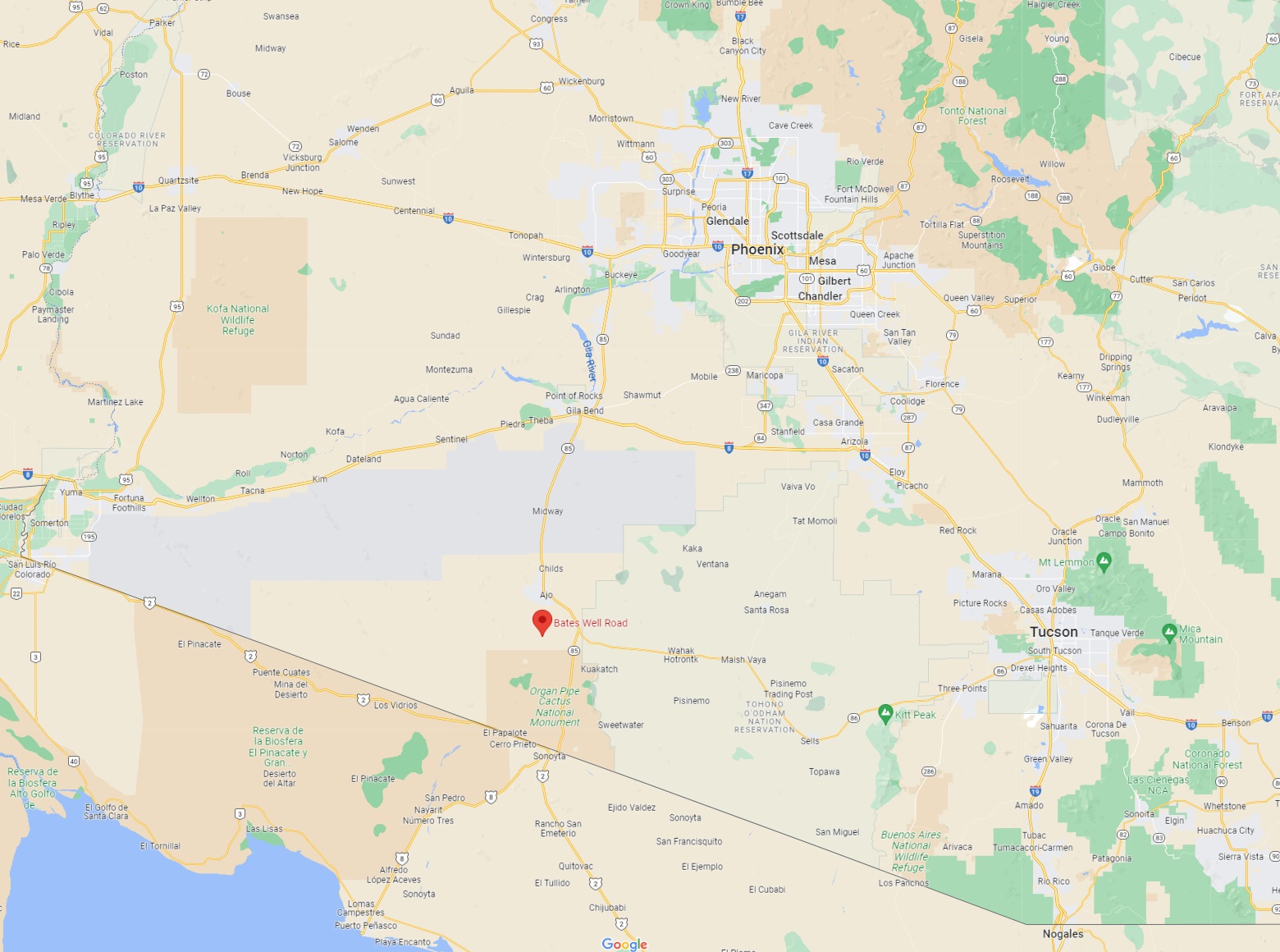 11 miles south/southeast of Ajo; east of Bates Well Road