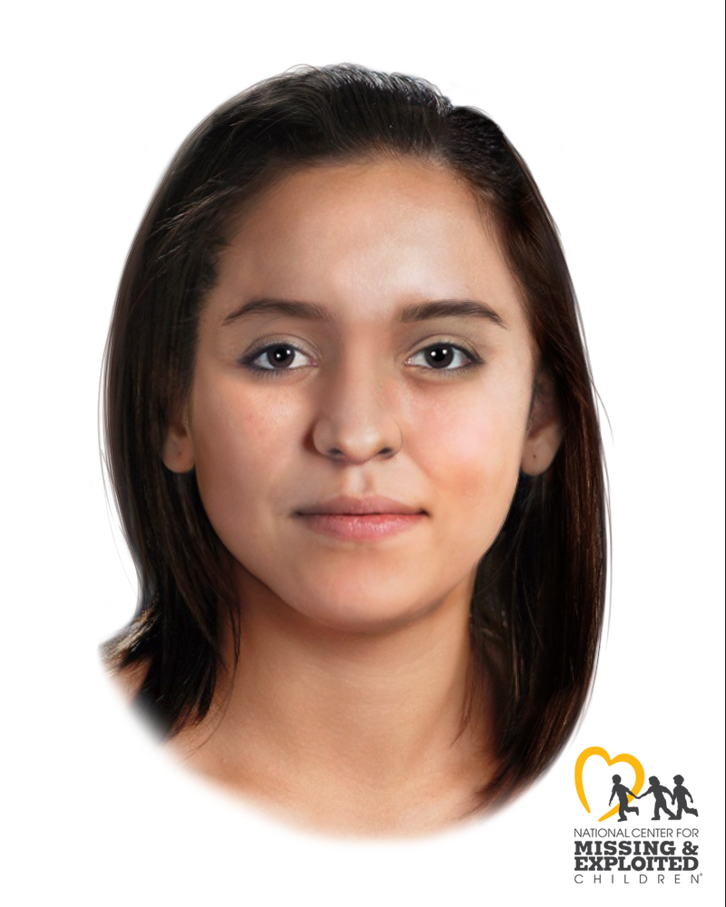 Dark-brown hair, straight, medium length (neck to shoulder)