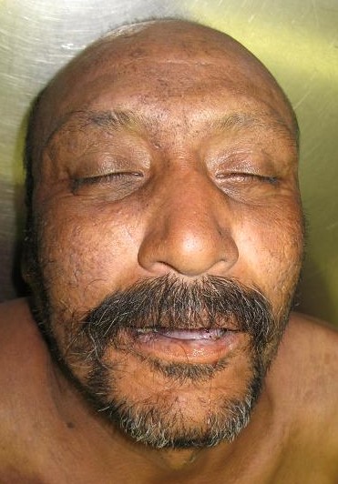 1" Gray or Partially Gray/black straight hair; typical male pattern balding