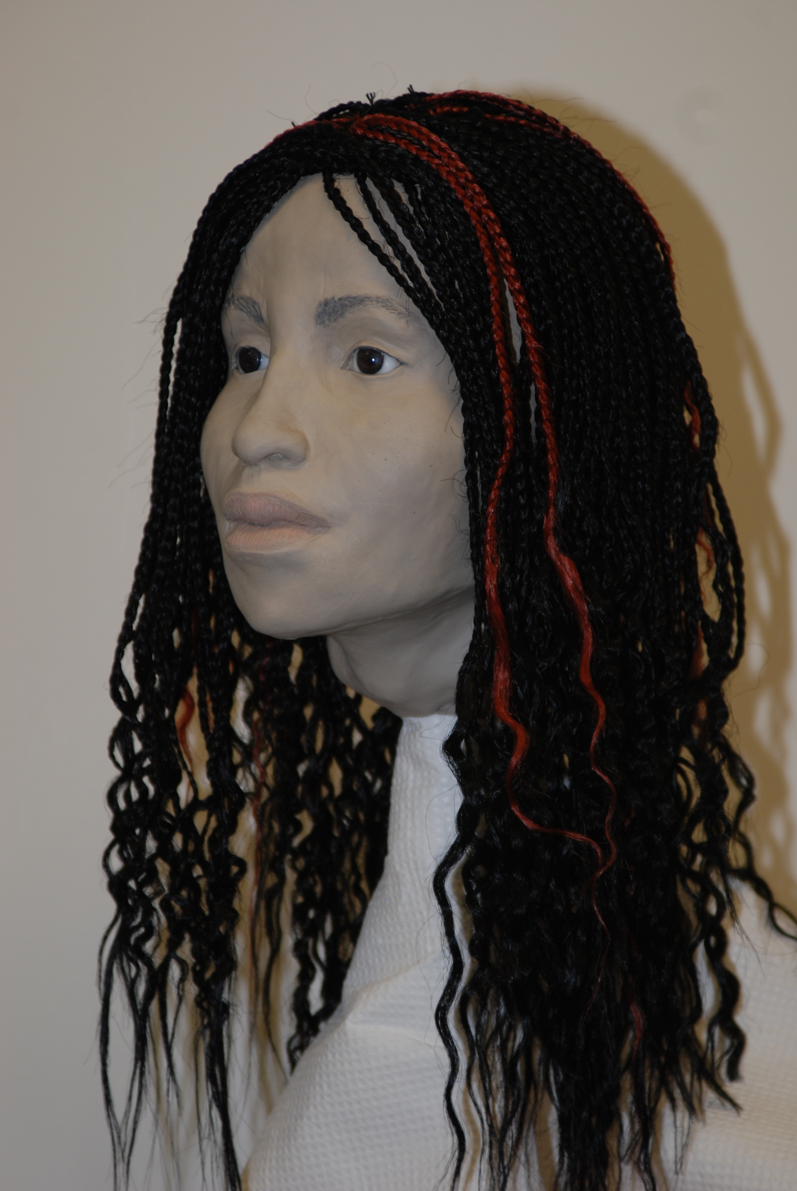 28 inch black braided hair extensions attached to victim's hair with some brown/copper colored braids as well