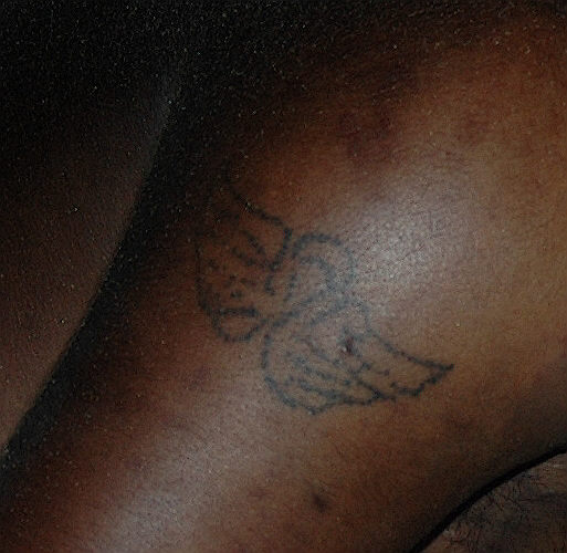 Decedent found in open desert on 8/13/2005, west of the All American Canal. The decedent was apparently attempting to enter the USA illegally. He had a tattoo on his right shoulder resembling a pair of wings or possible angel w/ wings (see picture). Date Found: 2005-08-13