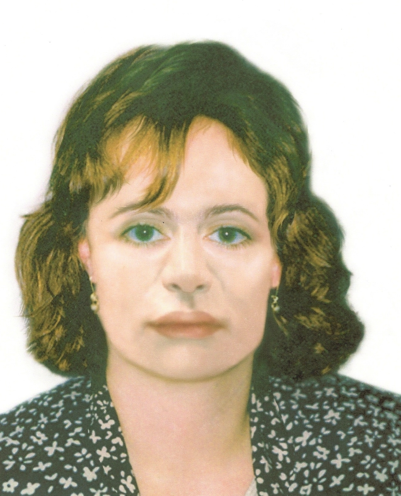 shoulder-length dyed blonde with visible gray roots